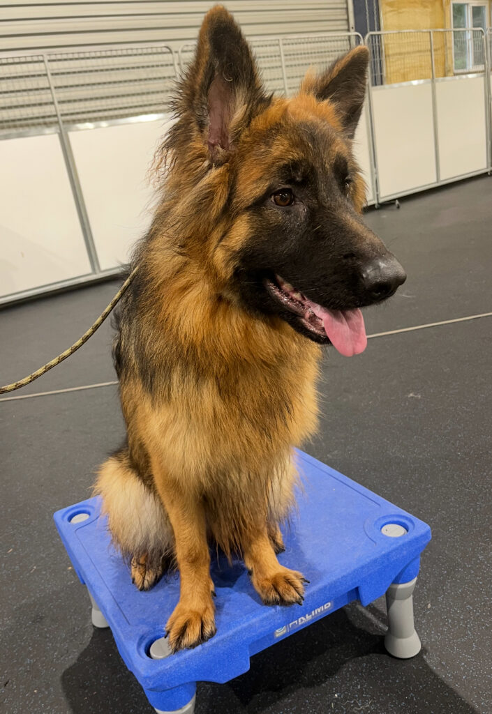 Eichhörnchen lived with another dog and children. She completed our obedience group classes and did several board and trains before coming back to us. We have continued her training and she has been thriving. She is a very smart girl that simply needs directions and guidance to succeed.