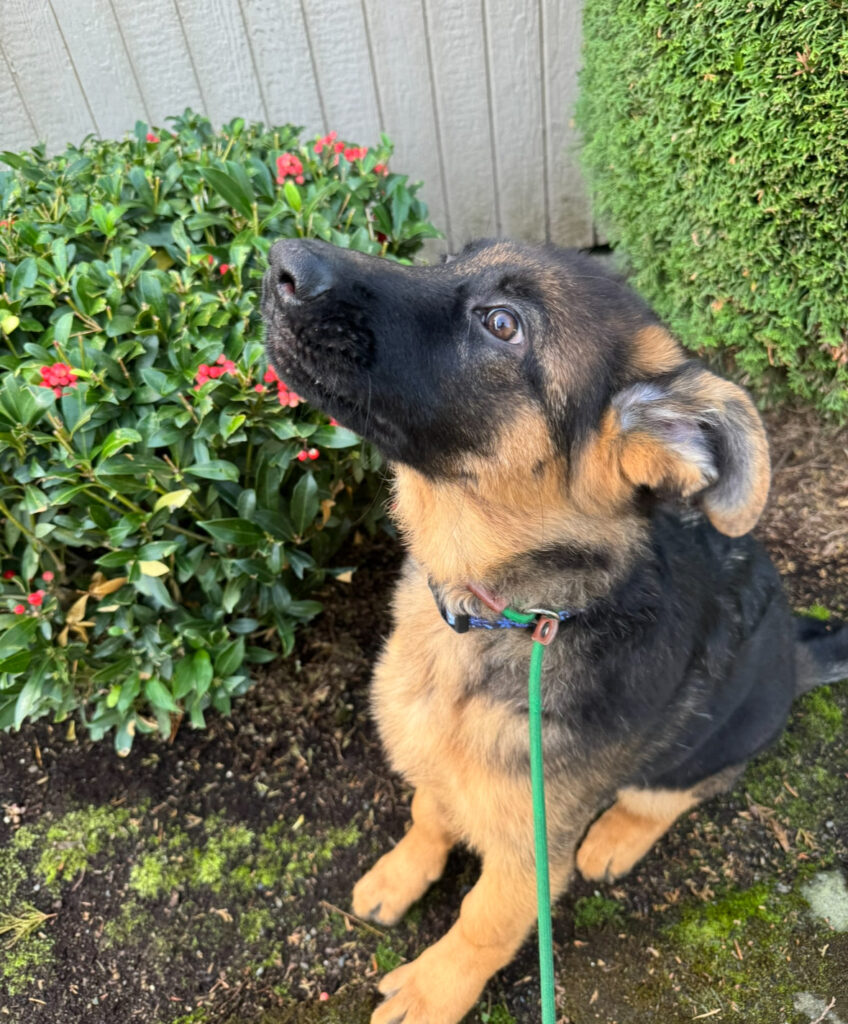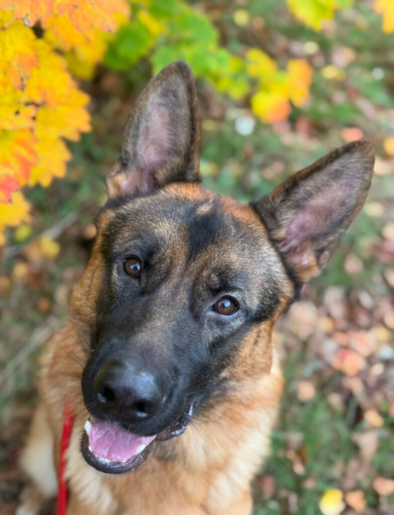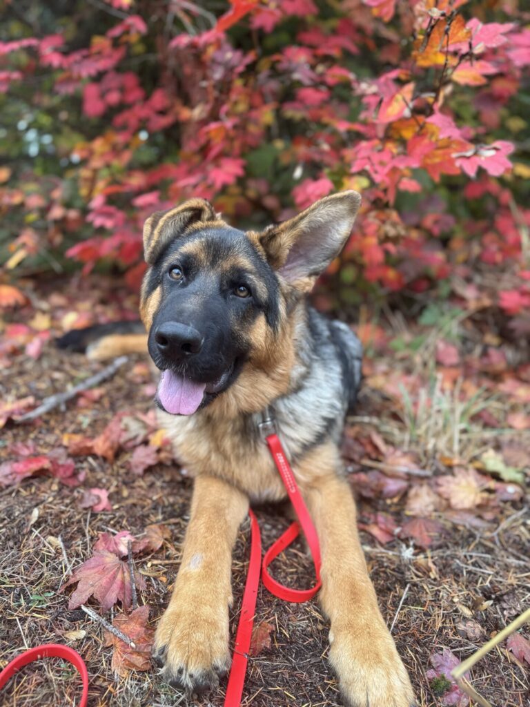 If you are looking for a sweet yet playful female, Hela might be the right fit for you. She will become available to an approved home at the end of October when her training is a little more solidified and she is a little older.